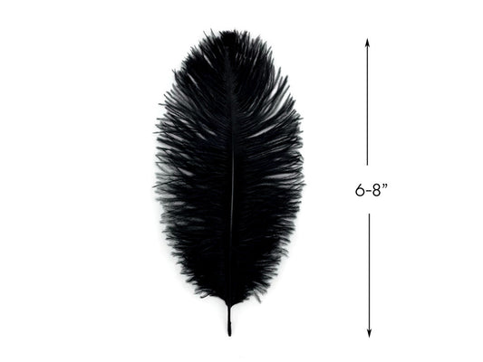 10 Pieces - 6-8" Black Ostrich Dyed Drabs Feathers