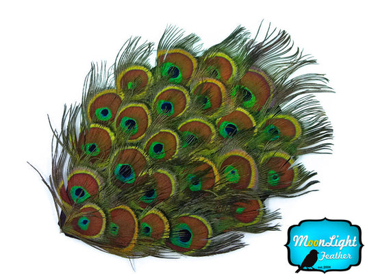 1 Piece - Natural Green Iridescent Peacock Tiny Eyes Handmade Feather Pad