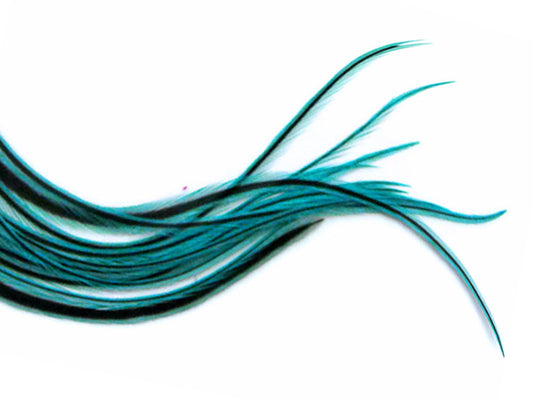 1 Dozen - Medium Solid Aqua Mint Rooster Saddle Whiting Hair Extension Feathers