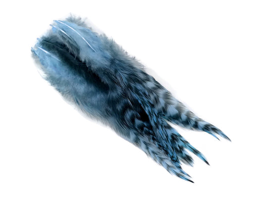 1 Dozen - Medium Light Blue Grizzly Rooster Saddle Whiting Hair Extension Feathers