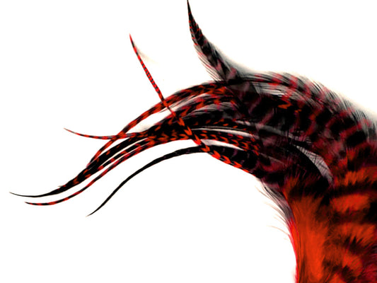 1 Dozen - Medium Red Grizzly Rooster Saddle Whiting Hair Extension Feathers