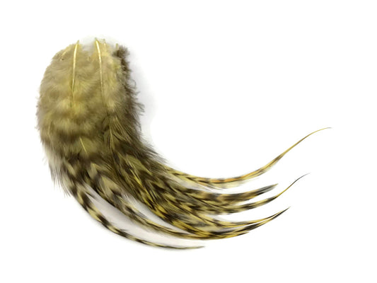 1 Dozen - Medium Olive Green Grizzly Rooster Saddle Whiting Hair Extension Feathers