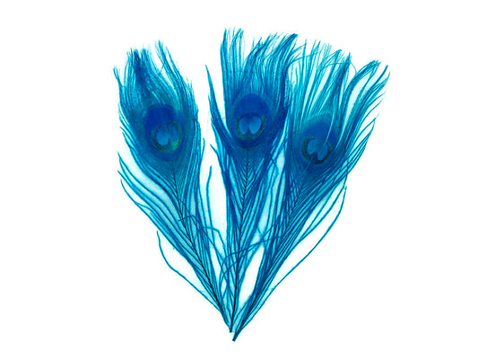 100 Pieces – Turquoise Blue Bleached & Dyed Peacock Tail Eye Wholesale Feathers (Bulk) 10-12” Long