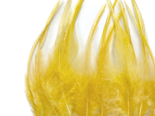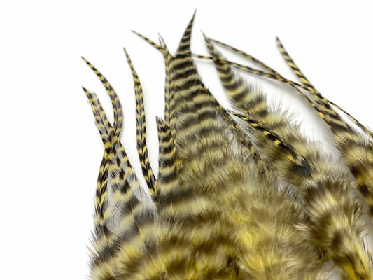 1 Dozen - Short Golden Yellow Grizzly Whiting Farm Rooster Hair Extension Feathers