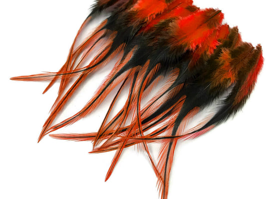 1 Dozen - Short Orange Grizzly Whiting Farm Rooster Saddle Hair Extension Feathers