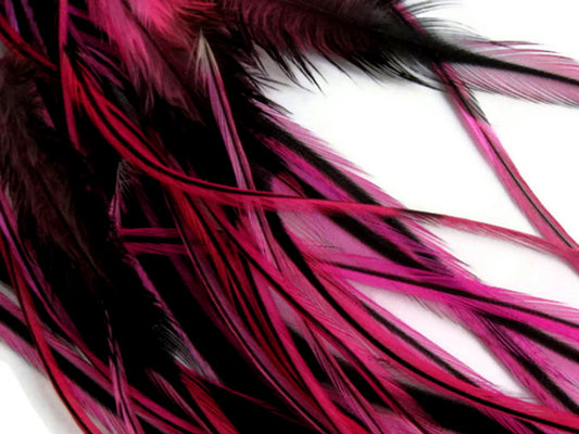 1 Dozen - Short Hot Pink Grizzly Rooster Hair Extension Feathers