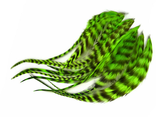 1 Dozen - Short Lime Green Grizzly Whiting Farm Rooster Saddle Hair Extension Feathers