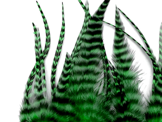 1 Dozen - Short Kelly Green Grizzly Whiting Farm Rooster Hair Extension Feathers