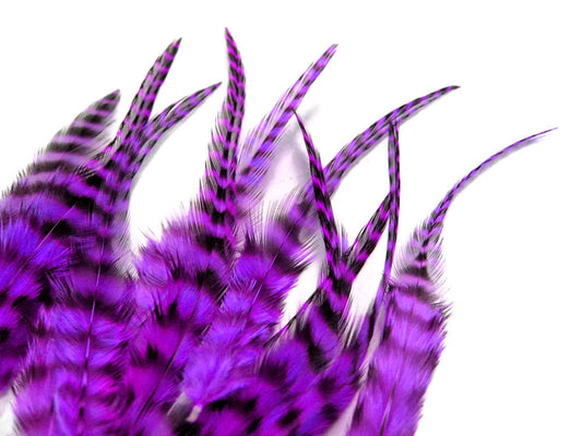 1 Dozen - Short Purple Grizzly Whiting Farm Rooster Saddle Hair Extension Feathers
