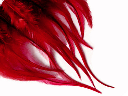 1 Dozen - Short Red Grizzly Rooster Hair Extension Feathers