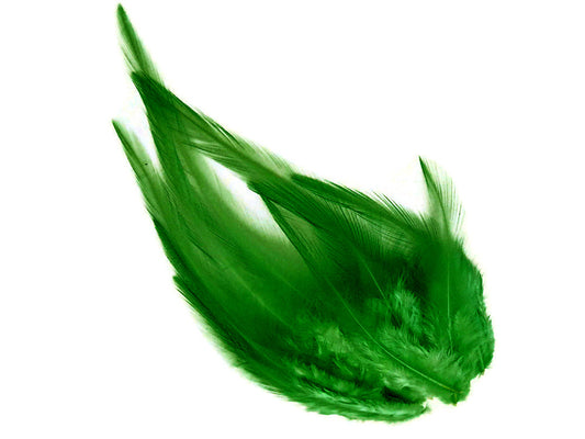 1 Dozen - Short Solid Kelly Green Whiting Farm Rooster Saddle Hair Extension Feathers