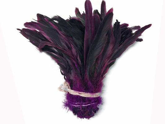 2.5 Inch Strip - Eggplant Strung Natural Bleach & Dyed Coque Tails Feathers