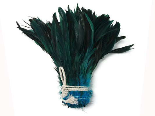 2.5 Inch Strip - Turquoise Half Bronze Natural Dyed Coque Tail Strung Feathers