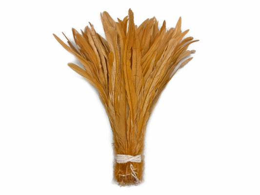 2.5 Inch Strip - Yellow Gold Half Bronze Natural Dyed Coque Tail Strung Feathers