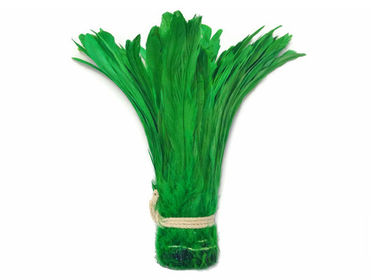 2.5 Inch Strip - Kelly Green Strung Natural Bleach & Dyed Coque Tails Feathers
