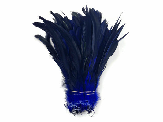 2.5 Inch Strip - Royal Blue Strung Natural Bleach & Dyed Coque Tails Feathers