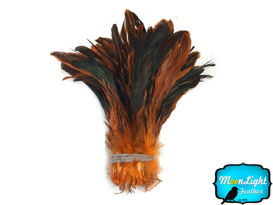 2.5 Inch Strip - Orange Half Bronze Natural Dyed Coque Tail Strung Feathers