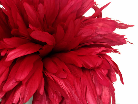 2.5 Inch Strip - 14-16" Red Strung Natural Bleach & Dyed Coque Tails Feathers