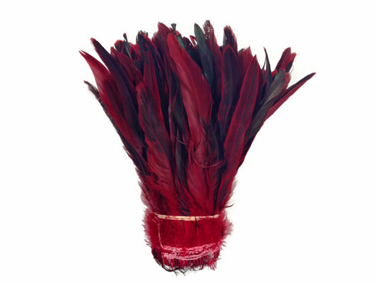 2.5 Inch Strip - Red Half Bronze Natural Dyed Coque Tail Strung Feathers