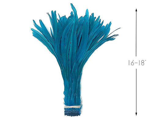 2.5 Inch Strip - 16-18" Turquoise Blue Strung Bleach & Dyed Rooster Coque Tail Feathers