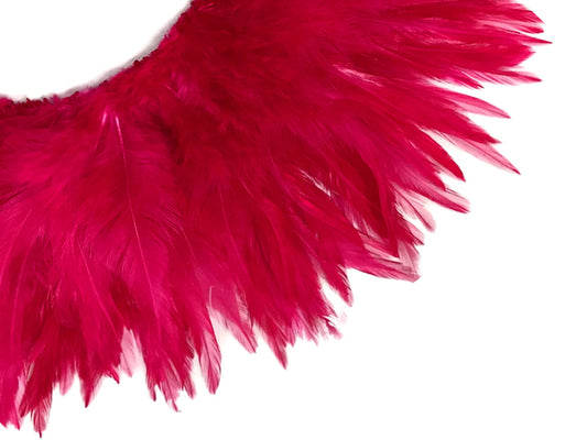 4 Inch Strip – 4-6” Dyed Hot Pink Strung Chinese Rooster Saddle Feathers