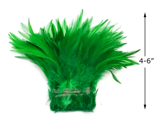 4 Inch Strip – 4-6” Dyed Kelly Green Strung Chinese Rooster Saddle Feathers