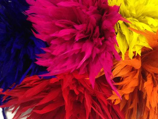 4 Inch Strip - Magenta Bleached & Dyed Strung Rooster Schlappen Feathers