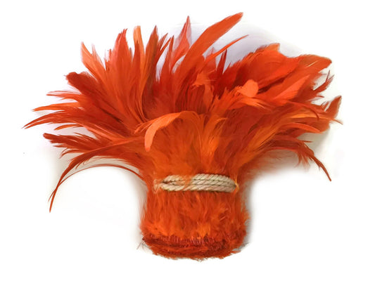 4 Inch Strip - Orange Dyed Half Bronze Strung Rooster Schlappen Feathers
