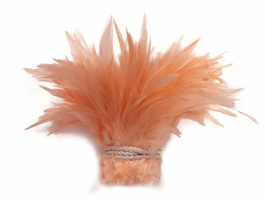 4 Inch Strip - Peach Bleached & Dyed Strung Rooster Schlappen Feathers