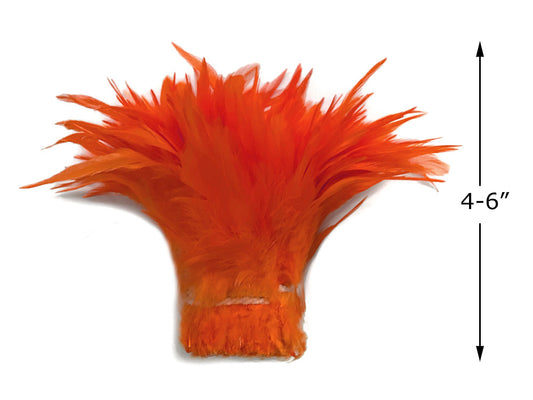 4 Inch Strip – 4-6” Dyed Orange Strung Chinese Rooster Saddle Feathers