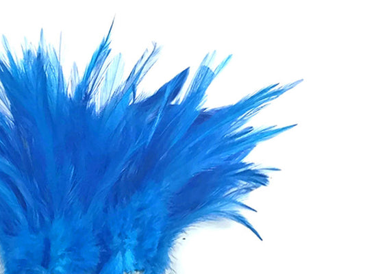 4 Inch Strip – 4-6” Dyed Royal Blue Strung Chinese Rooster Saddle Feathers
