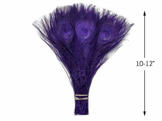 5 Pieces – Purple Bleached & Dyed Peacock Tail Eye Feathers 10-12” Long