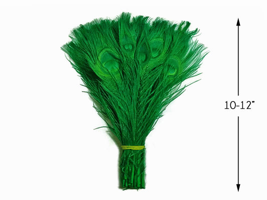 5 Pieces – Kelly Green Bleached & Dyed Peacock Tail Eye Feathers 10-12” Long