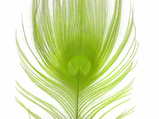 5 Pieces – Lime Green Bleached & Dyed Peacock Tail Eye Feathers 10-12” Long