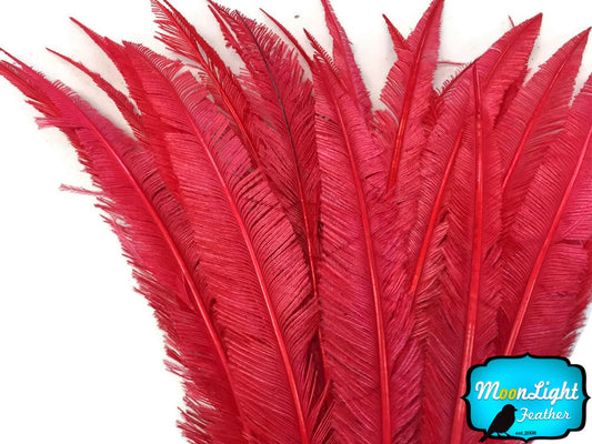 5 Pieces - Red Long Ostrich Nandu Trimmed Feathers