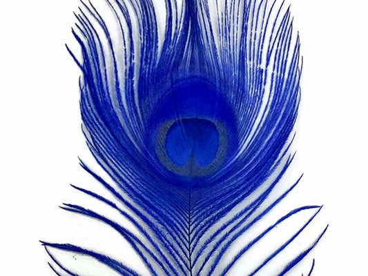 5 Pieces – Royal Blue Bleached & Dyed Peacock Tail Eye Feathers 10-12” Long