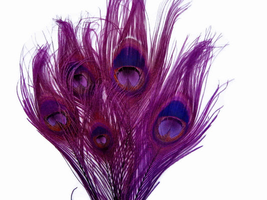50 Pieces - 30-35" Purple Dyed Over Natural Long Peacock Tail Eye Wholesale Feathers (Bulk)