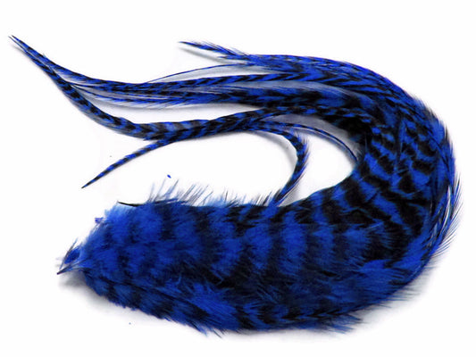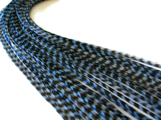 6 Pieces - XL Royal Blue Grizzly Thin Whiting Farm Rooster Hair Extension Feathers 11" and Up
