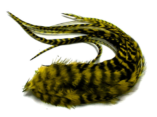 6 Pieces - XL Pale Yellow Thick Long Grizzly Whiting Farm Rooster Saddle Hair Extension Feathers