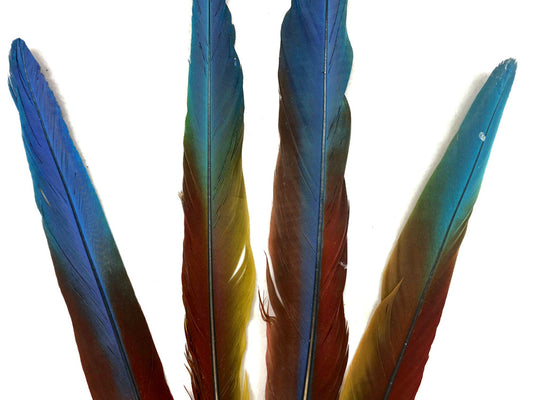 Set of 4 - 13-16" Super Rare Tri Color Ombre Hybrid Macaw Side Tail Feathers - Rare-