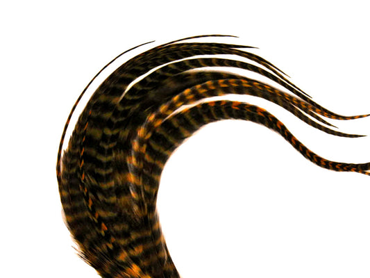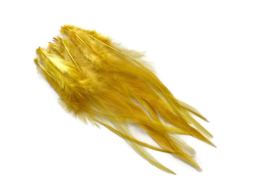 1 Dozen - Medium Golden Yellow Grizzly Rooster Saddle Whiting Hair Extension Feathers