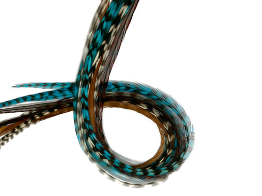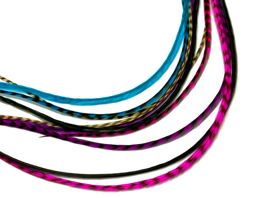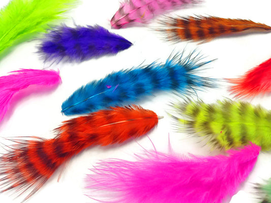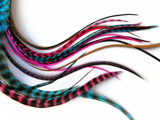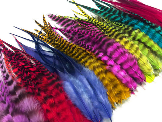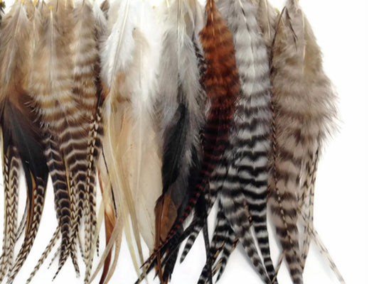 1 Dozen - Medium Party Mix Grizzly Rooster Saddle Whiting Hair Extension Feathers
