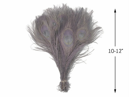 5 Pieces – Silver Gray Bleached & Dyed Peacock Tail Eye Feathers 10-12” Long