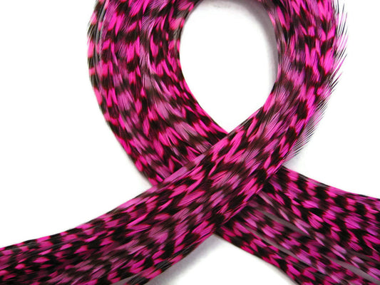 10 Pieces - Hot Pink Thin Long Grizzly Rooster Hair Extension Feathers