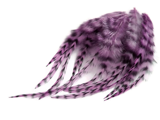 1 Dozen - Medium Purple Grizzly Rooster Saddle Whiting Hair Extension Feathers