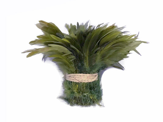 4 Inch Strip - Olive Green Bleached & Dyed Strung Rooster Schlappen Feathers