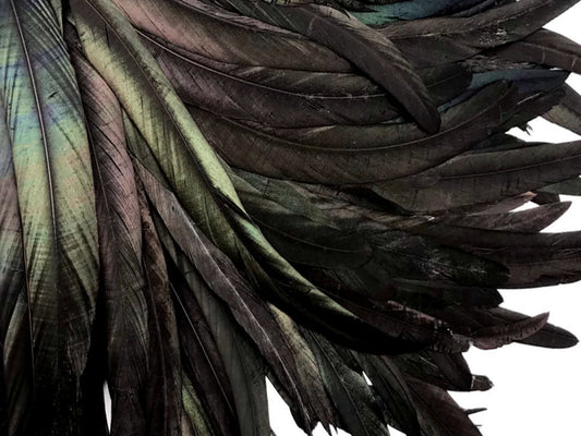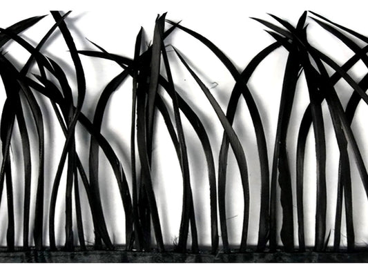 1 Yard - 10-12" Black Dyed Over Natural Coque Tails Long Feather Trim (Bulk)