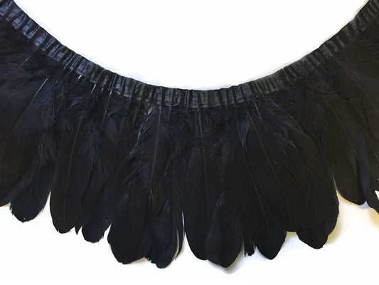 1 Yard - Black Goose Pallet Parried Dyed Feather Trim