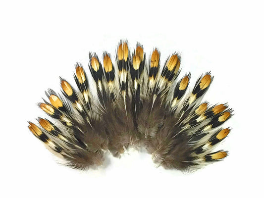 10 Pieces - Small Natural Gold Jungle Cock Eye Loose Feather