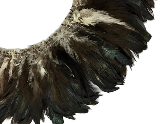 4 Inch Strip - Black Bronze Natural Schlappen Strung Rooster Feathers